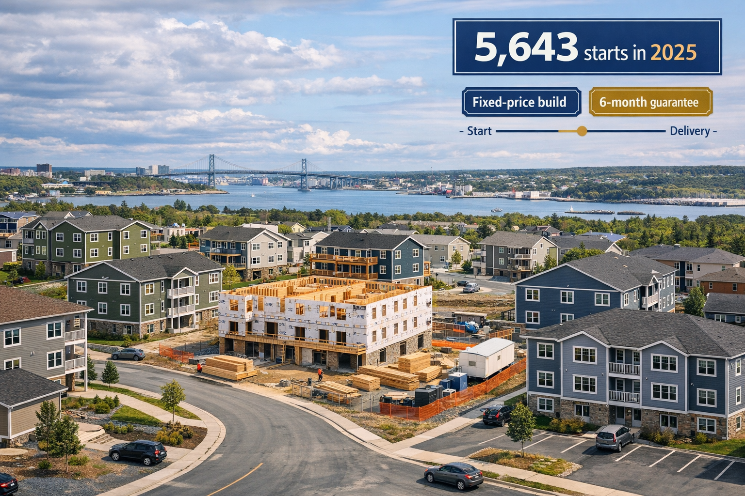 Halifax 5,643 starts in 2025; property owners: leverage fixed-price builds with a 6‑month guarantee to meet immigrant-driven rental demand.